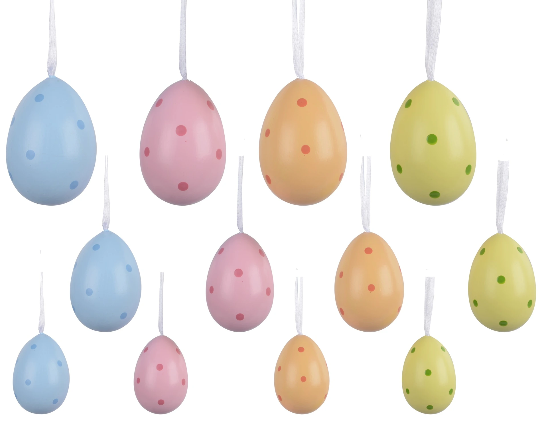 Bring spring to life with these colorful Easter eggs that create a playful and cheerful atmosphere in your home or on the terrace. This set consists of various Easter eggs with a soft, rounded shape and a fresh polystyrene surface. Each egg features a vibrant white satin ribbon, making them easy to hang on branches, wreaths, or as part of a window decoration. The combination of different pastel colors and dots gives the whole set a charming and inviting look that enhances any seasonal element.