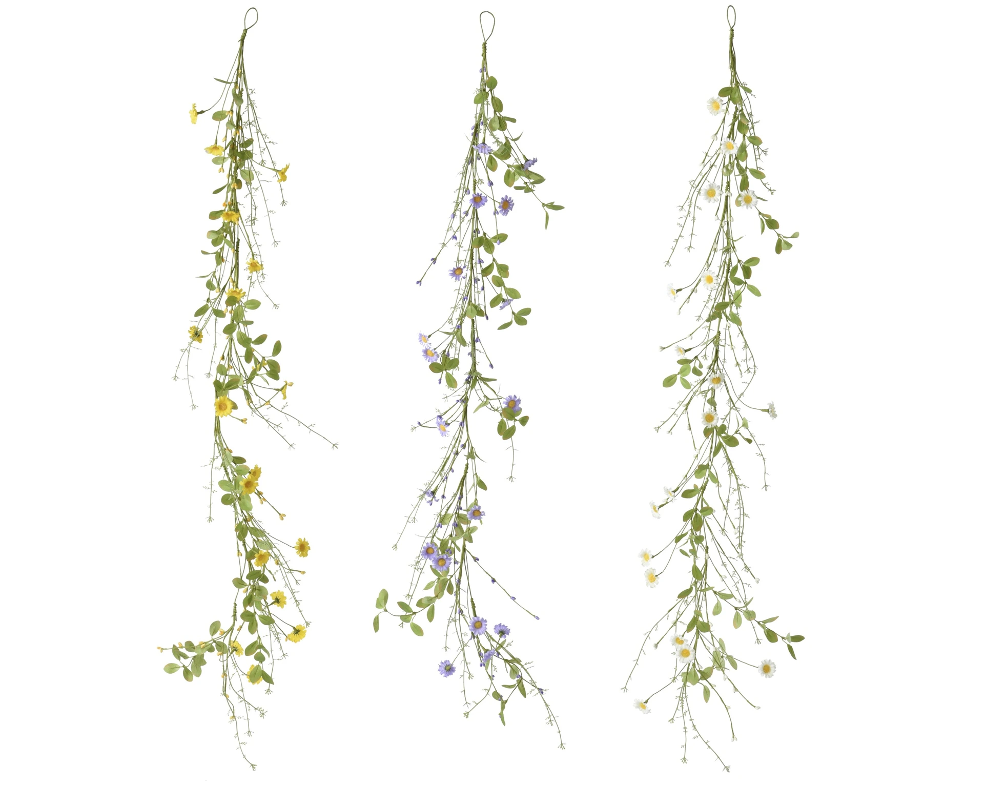 Garland Daisy Polyester Mini Flower Blossom 3Col Asst. L.120Cm