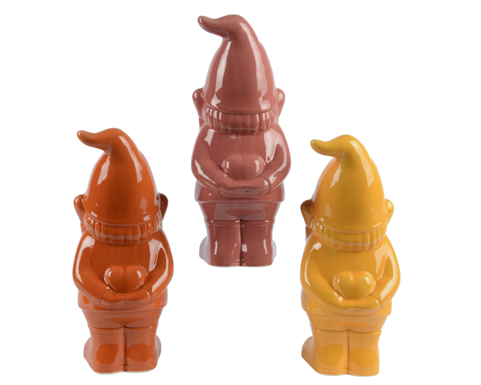 A cheerful gathering gains extra warmth with this colorful gnome set from Decoris. This set consists of three playful ceramic gnomes with a glossy finish, each featuring a unique heart detail. With their infectious smiles and vibrant colors, they bring a contemporary, homely atmosphere to any space. Their compact shapes make it easy to find a spot for them, whether on a windowsill, side table, or in a cabinet.