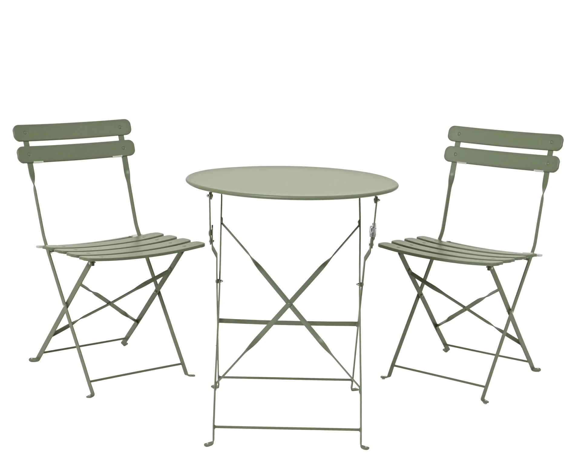 Summer evenings gain extra charm with this stylish bistro set, perfect for a cozy terrace or balcony. The set consists of a compact, round table with a diameter of 60 cm and two comfortable chairs, all made from sturdy steel and finished in a matching green color. The sleek design exudes a timeless and natural atmosphere, where functionality and aesthetics go hand in hand. This compact set is ideal for 2 people and adds comfort and coziness to any outdoor space.