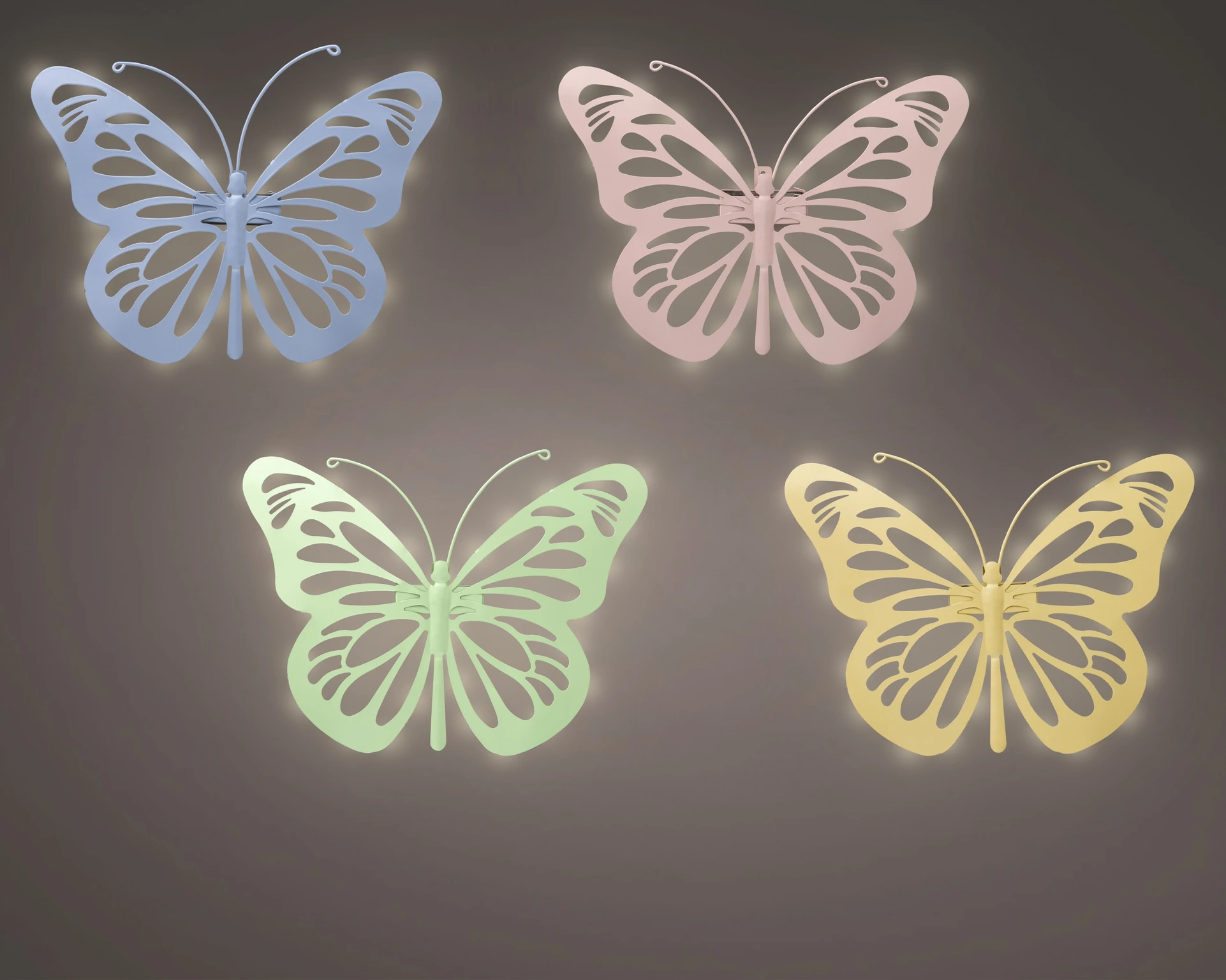 Solar Butterfly Iron Steady 4Col Asst./Warm White H.26.5Cm