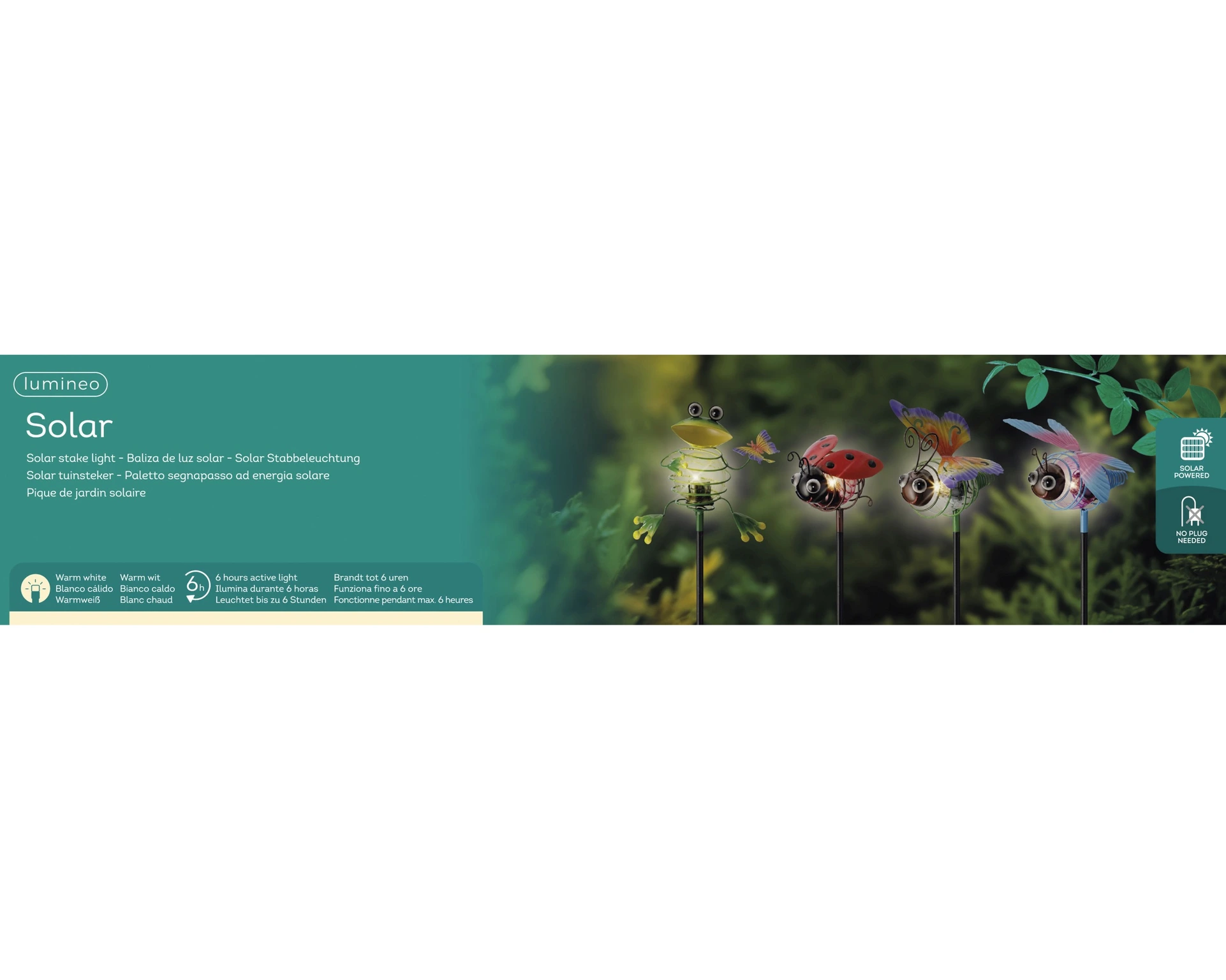A cheerful addition to any garden, balcony, or terrace that creates a warm, inviting atmosphere. This Lumineo garden stake operates on solar power with an included battery and illuminates with soft warm white micro LED light for up to 6 hours after sunset. The colorful, plastic animal silhouette adds playfulness and style, while its compact size blends harmoniously with greenery. Thanks to its user-friendly design with a steady light function and durable materials, this decorative garden stake is an atmospheric eye-catcher that enriches every outdoor moment.