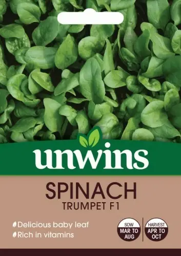 Spinach Trumpet (Spinacea oleracea) Trumpet is a very strong growing, new variety of Spinach which is fantastic in both performance and flavour. The dark green leaves are packed full of vitamins and are delicious used as baby leaf or left to mature. With high levels of disease resistance this Spinach is a must for the Kitchen Garden. Trumpet is a very strong growing, new variety of Spinach which is fantastic in both performance and flavour. Delicious baby leaf Dark green leaves