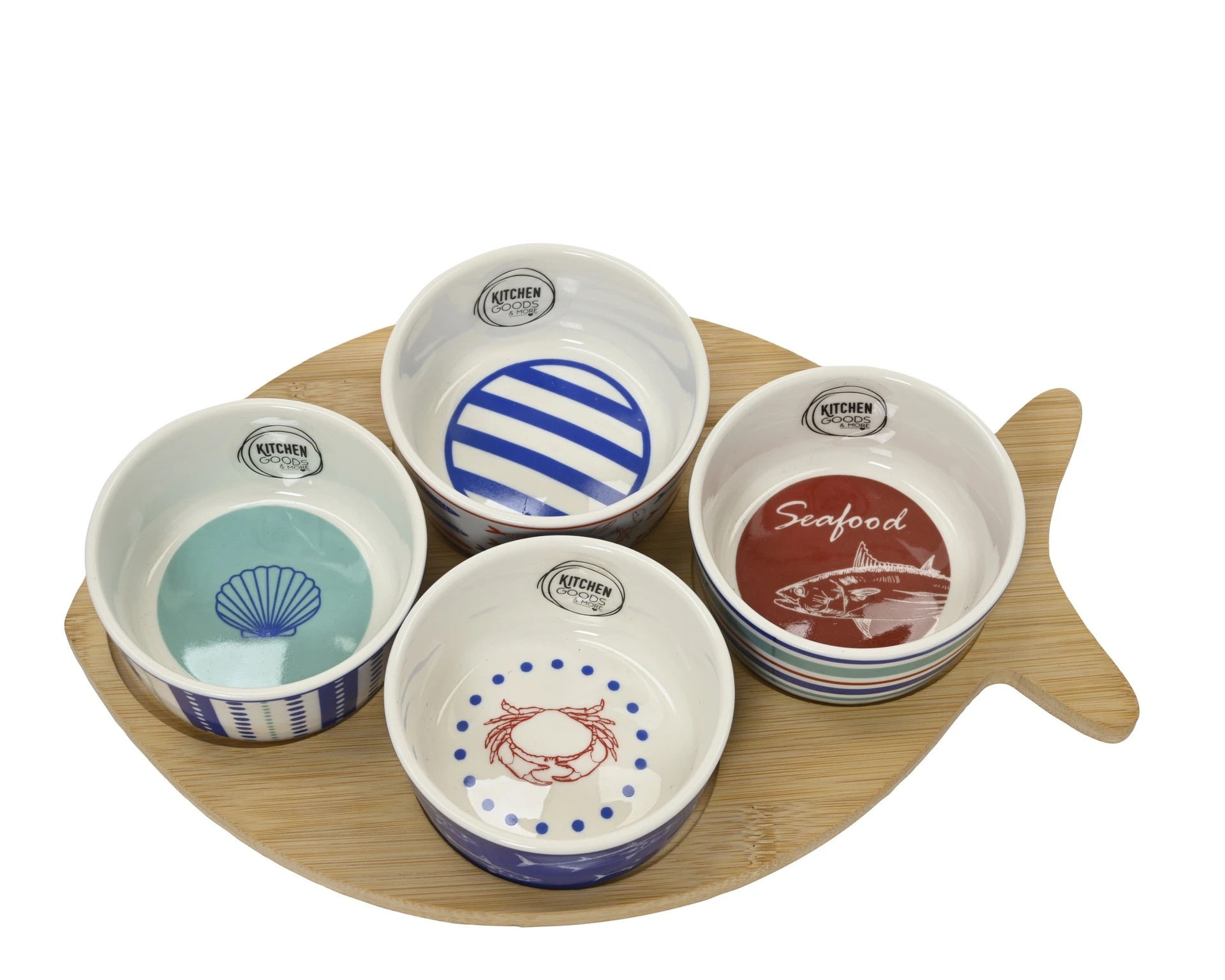Kitchen Goods tapas set 4-piece multi with bamboo fish platter