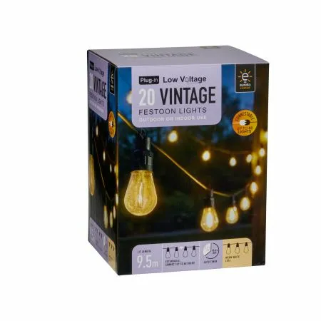 Shop for Vintage Festoon LV String Lights Warm White - Set of 20 at Jones Garden Centre, where we present an extensive selection of Garden Lighting available online. Prefer the hands-on approach? Visit our garden centre in Donabate to witness Vintage Festoon LV String Lights Warm White - Set of 20 in person. Our dedicated team of experts is ready to assist you with any queries. If you haven't discovered the precise item you were seeking, don't worry. Our webshop boasts over 3000 items, ensuring you'll always come across fantastic deals and delightful gifts. Explore the categories below to discover more products.
